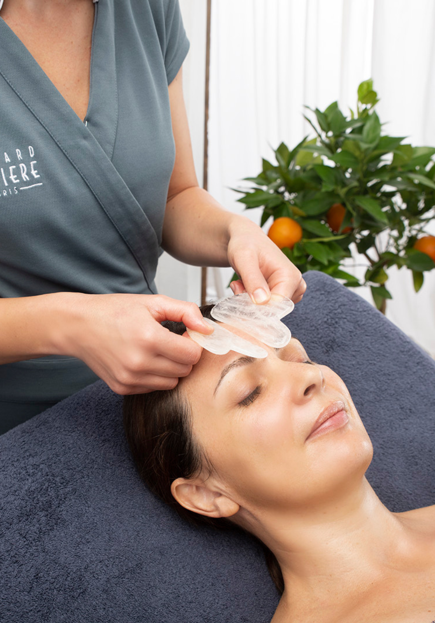 Zabieg Dull Skin Detox Treatment z wykorzystaniem masażu twarzy kwarcem kryształowym Gua-Sha to innowacyjna metoda, która pochodzi z tradycji chińskiej medycyny. Kamień kwarcowy energetyzuje skórę, dotlenia ją i zapobiega jej wiotczeniu, dając efekt liftingu i poprawy elastyczności.