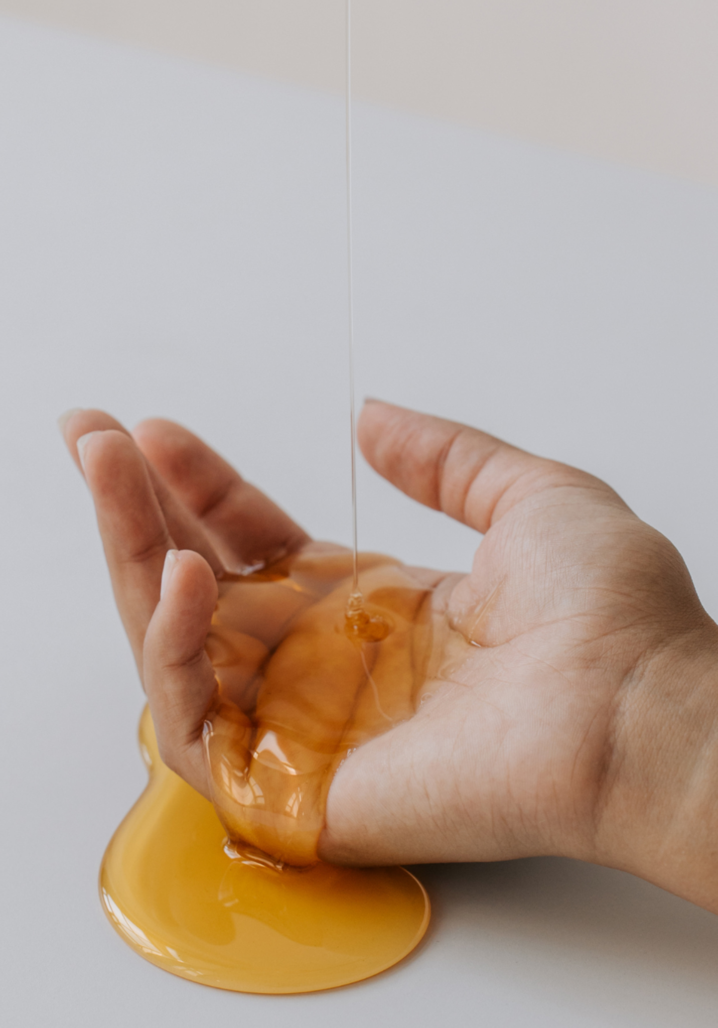 Miód: bogaty w sole mineralne i witaminy A, B i C. Jest również antyseptyczny, stymulujący i ma wiele właściwości: leczniczy, przeciwutleniający, kojący, nawilżający, rewitalizujący. Jest zatem idealnym sprzymierzeńcem w nadawaniu skórze promiennego blasku, a także w jej dogłębnym nawilżaniu i odżywianiu.