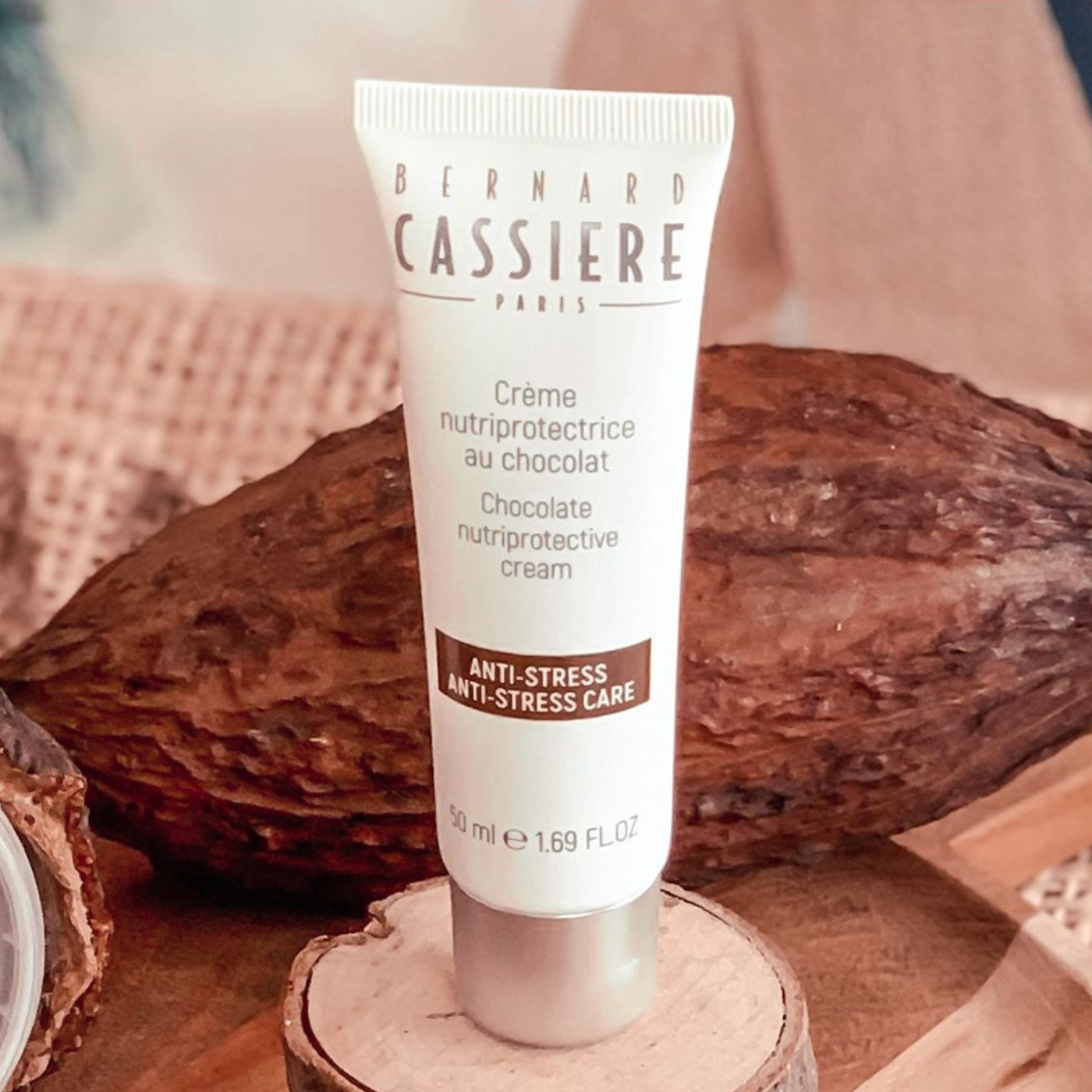 Zawiera ekstrakty z kakao, bogate w polifenole o właściwościach przeciwrodnikowych i przeciwutleniających, oraz masło kakaowe i shea, aby pomóc skórze odzyskać blask, komfort i młody wygląd.