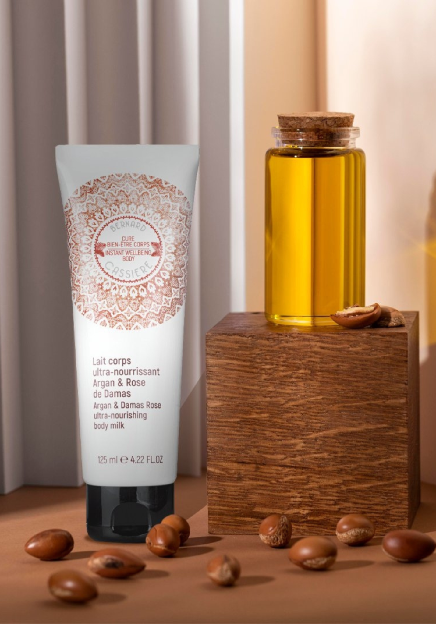 Daj się oczarować orientalnym perfumom! Produkty oparte jest na oleju arganowym pochodzącym ze sprawiedliwego handlu i ekstraktach z róży damasceńskiej, które zwalczają wolne rodniki, chronią przed przedwczesnym starzeniem i przywracają skórze blask.