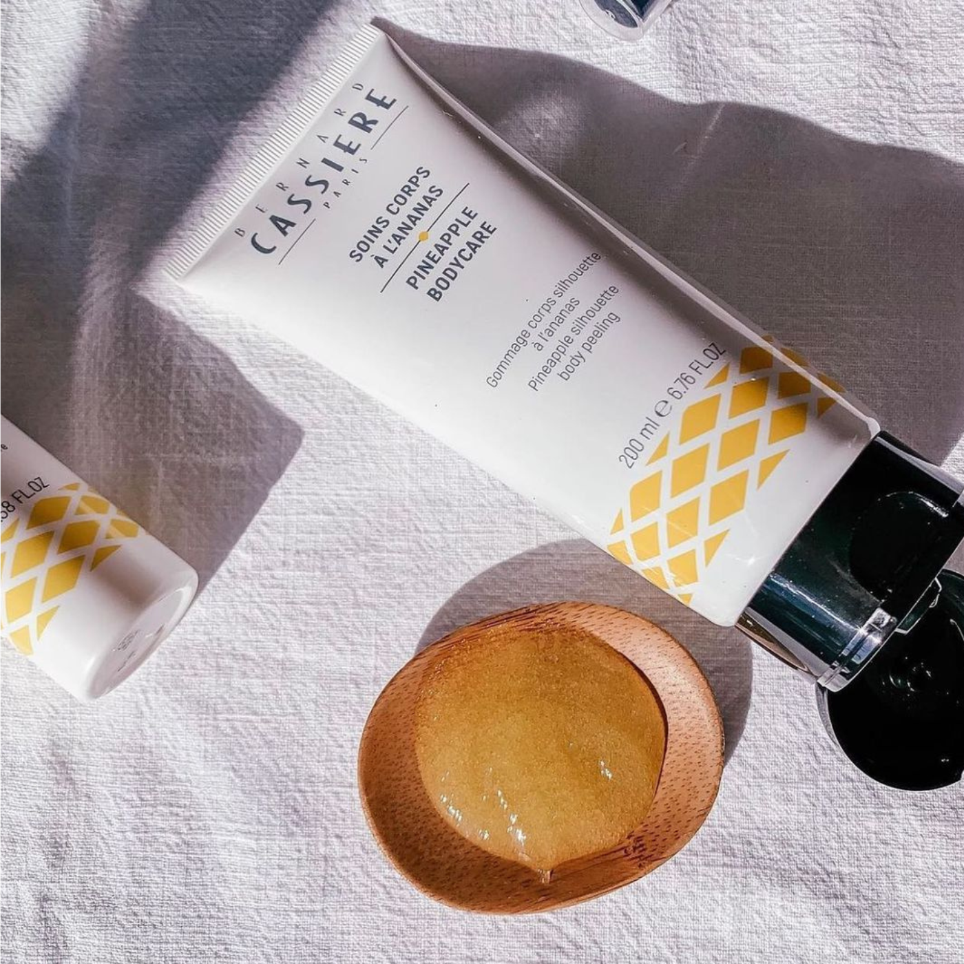 Zrewitalizuj swoją skórę dzięki ananasowemu peelingowi do ciała! Jego energetyzująca formuła jest wzbogacona tropikalnym kompleksem ze sprawiedliwego handlu (ananas + zielona herbata + kawa) oraz organicznymi ziarnami trzciny cukrowej, które usuwają martwe komórki. W połączeniu z użyciem żelu wyszczuplającego BC znacząco poprawia gładkość skóry i utratę centymetrów.