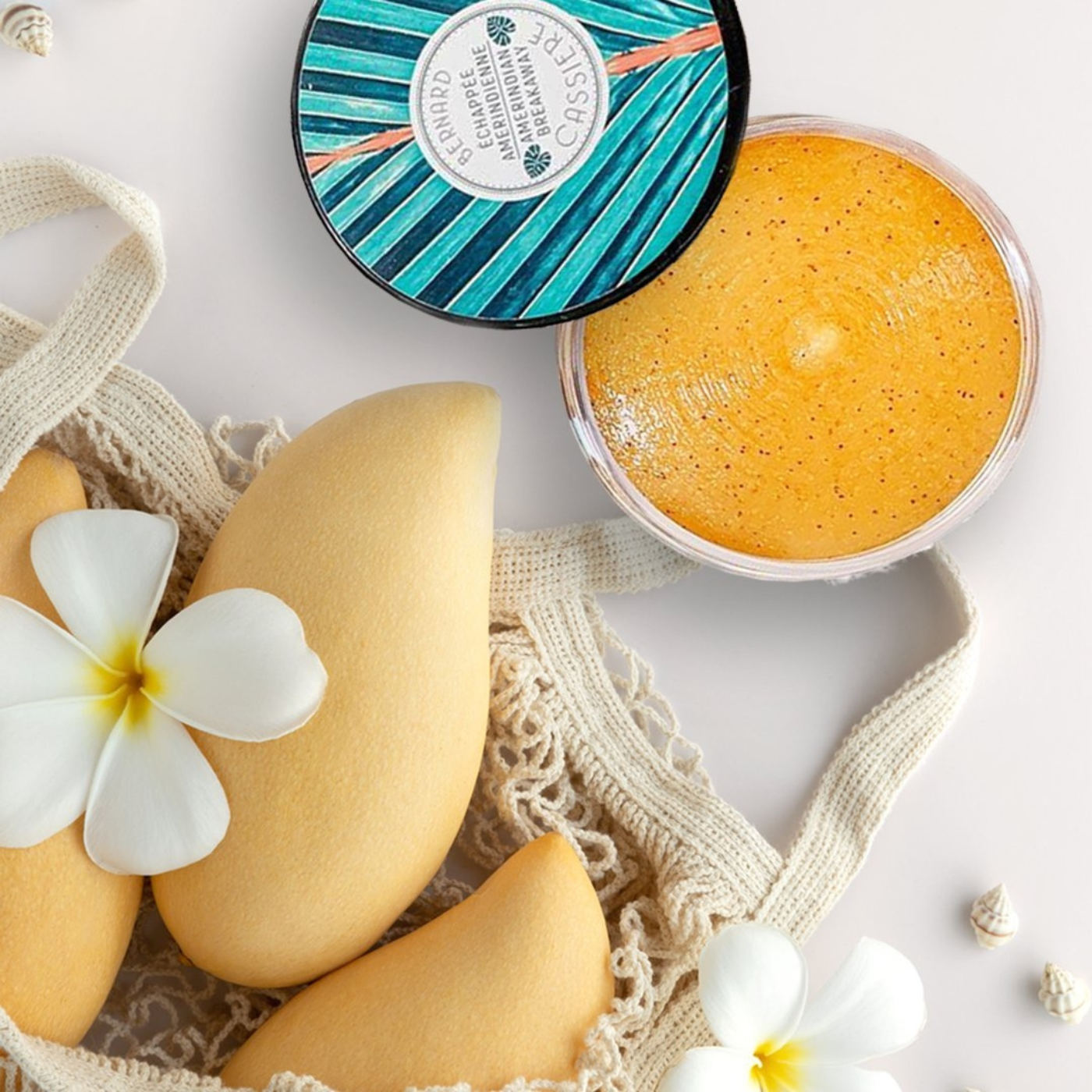 Delikatny, ale tonizujący, łączy w sobie naturalny proszek z orzechów shea i ziarenka cukru, aby złuszczać skórę, a także  olej z orzechów makadamia, aby przywrócić blask i komfort. Naturalne ekstrakty z dzikiego mango i masła cupuaçu zostały dobrane tak, aby chronić i zmiękczać skórę, jednocześnie ozdabiając ją owocowym, smakowitym zapachem.