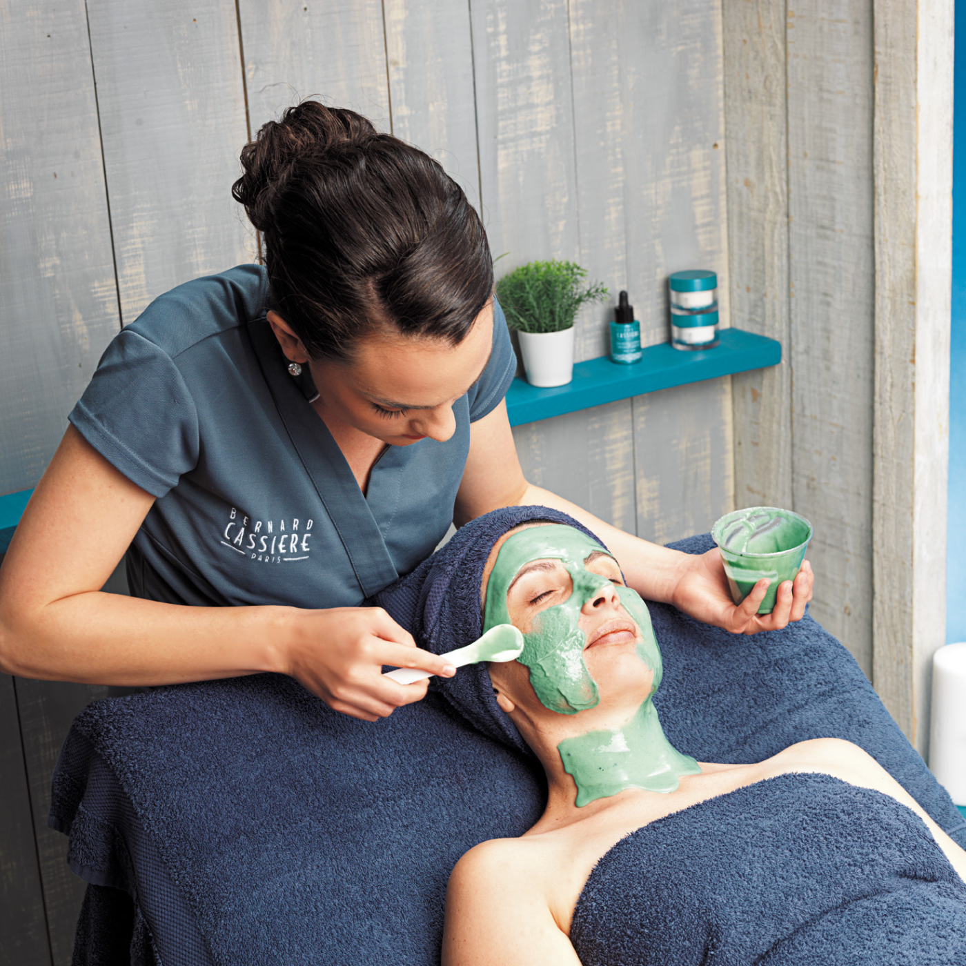 Wylej na dłoń 2/3 roztopionego masła do masażu Spirulina  (ostatnia dawka zostanie wykorzystana do masażu dłoni) i wykonaj masaż młodości BC Yoga na twarzy, szyi i dekolcie przez 20 minut. Następnie zmyj ciepłym i wilgotnym ręcznikiem (dwukrotnie), stonizuj dostosowanym tonikiem BC (łagodzącym lub odświeżającym) i dobrze osusz.