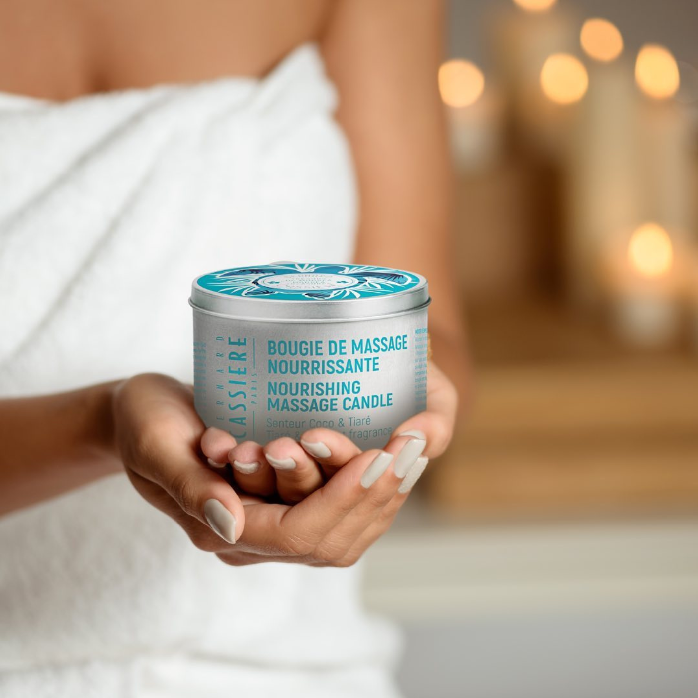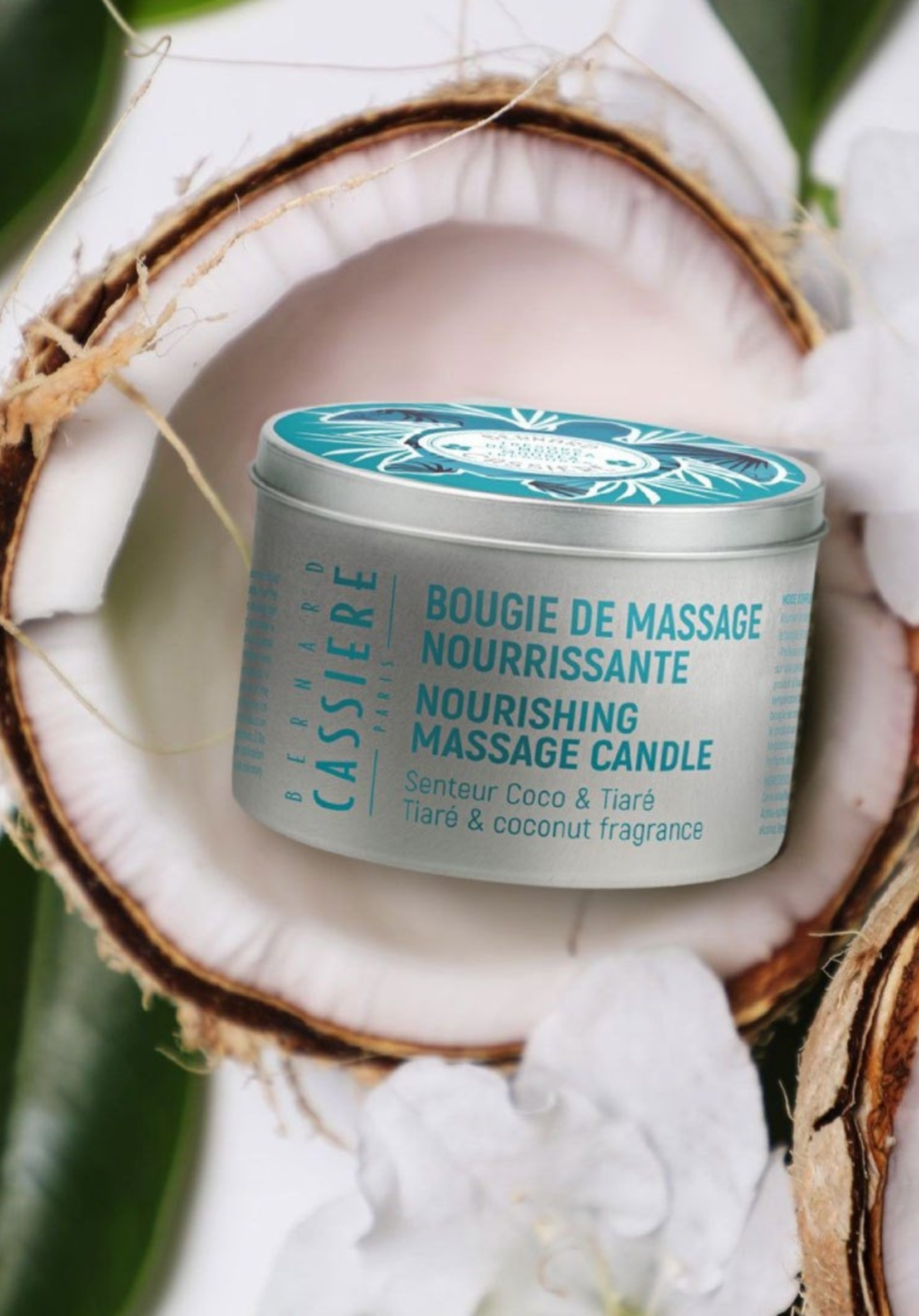 Świeca, która przekształca się w olejek do masażu, aby zapewnić chwilę odnowy biologicznej, która łączy ciepło i masaż.  Skóra jest odżywiona i delikatnie muśnięta tym delikatnym słonecznym zapachem kokosa i kwiatu Tiaré.